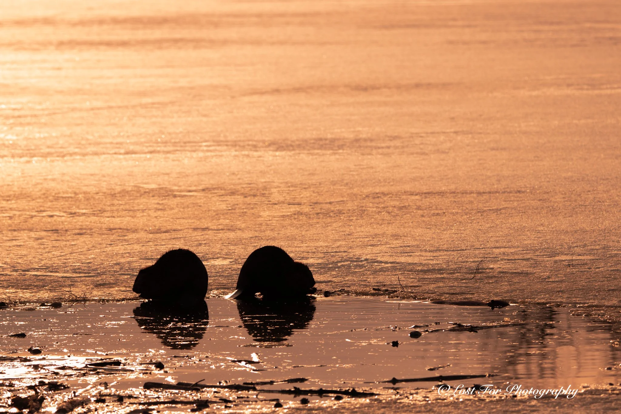 On March 25, 2025, my mum and I took a day long road trip around Alberta, embracing the beautiful Spring day, celebrating new beginnings, and enjoying the company of each other. We played with the light of the day as it passed over the sky from east to west, even with the high noon bright sun the light was plentiful. Now as we made our way home, we passed through Elk Island National Park but were not sure we would even get anything due to how low the sun has become in the sky. It was around 6pm, maybe 7pm the latest, and the park was becoming engrossed in shadows. You either had to capture the light facing east, hike into the park in the slushy, sopping, soggy trails, or go for silhouettes. We stayed on the main road due to the lateness of the day, my dog being in the back of the truck, and just how wet the ground would be. There was not enough time to hike trails unless you had a flashlight along with you and good ol’ pair of rubber boots. I did not have rubber boots, not even winter boots, but only my Ariat Sport Rambler Cowboy boots on. As we made our way slowly along the main road that passes through the park, we did not expect to come across the wildlife that we did see. Well not at least as much of the wildlife that we came across. First we came across this pond to the west where there were three beavers busy in the evening light. Now since they were facing west, getting a great shot with light in their eyes was going to be impossible. Knowing I was facing against the light, a silhouette shot was going to be my only best shot. I got low, down to the ground, 150-600mm Sigma on, and I observed the beauty of the three beavers together. It was peaceful, tranquil, and a moment I won’t ever forget. I felt at one with the beavers and the nature around me, with the sound of birds in the trees, a slight breeze, and just quiet.